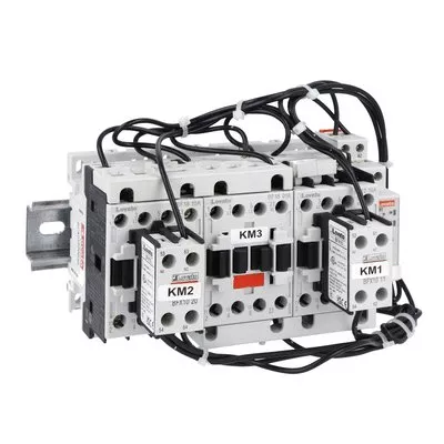 BFA01870230 Rozrusznik gwiazda-trójkąt (15kW), złożony, bez obudowy, czas rozruchu do 12 sekund i maksymalnie 30 rozruchów na godzinę, maks. prąd roboczy 28A. Napięcie cewki 230VAC 50/60Hz