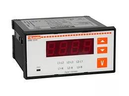 DMK10R1 Woltomierz. 3 napięcia fazowe, 3 napięcia międzyfazowe, 3 maks. napięcia fazowe, 3 maks. napięcia międzyfazowe, 3 min. napięcia fazowe, 3 min. napięcia międzyfazowe. Wyjście przekaźnikowe do funkcji ochrony i nadzoru