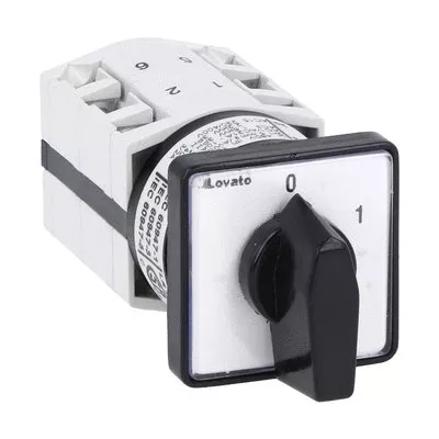 GF1090U Łącznik krzywkowy serii GF, rozłącznik, 1 pole, 10A, do montażu tablicowego, z czarnym pokrętłem i tabliczką 30x30mm