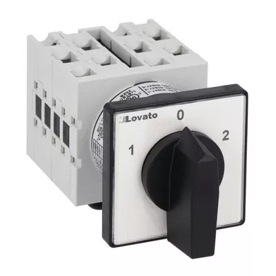 GX1675U Łącznik krzywkowy serii GX, przełącznik sieci, 4 pola, 16A, do montażu tablicowego, z czarnym pokrętłem i tabliczką 48x48mm