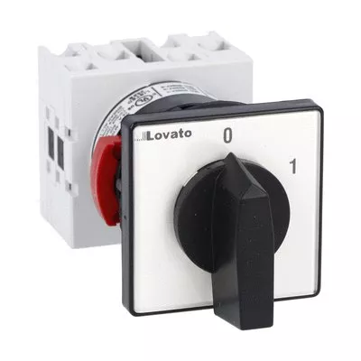 GX2090U47 Łącznik krzywkowy serii GX, rozłącznik, 1 pole, 20A, do montażu tablicowego w otworze 22mm z czarnym pokrętłem, montowanym na zatrzask do korpusu i tabliczką 48x48mm