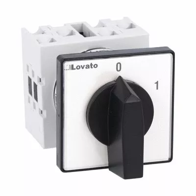 GX2091U Łącznik krzywkowy serii GX, rozłącznik, 2 pola, 20A, do montażu tablicowego, z czarnym pokrętłem i tabliczką 48x48mm