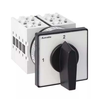 GX3269U Łącznik krzywkowy serii GX, przełącznik sieci bez 0, 4 pola, 32A, do montażu tablicowego, z czarnym pokrętłem i tabliczką 65x65mm