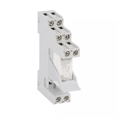 HRA302CD024K4 Zestaw złożony z przekaźnika miniaturowego, 24VDC, 8A, styki 2C/O. Gniazdo z zaciskami śrubowymi i obejmą wyrzutnikową