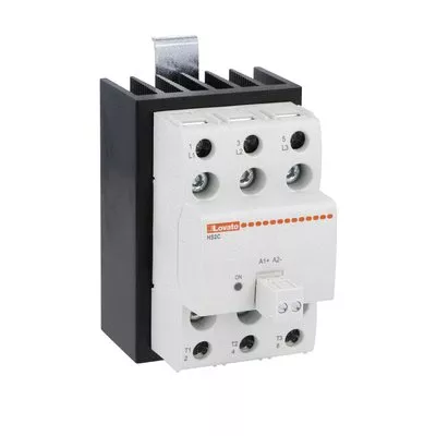 HS2C6HV030D024 Przekaźnik półprzewodnikowy, z radiatorem, 3 fazowy (kontrola 2 faz), 30A, 4...32VDC, zaciski śrubowe