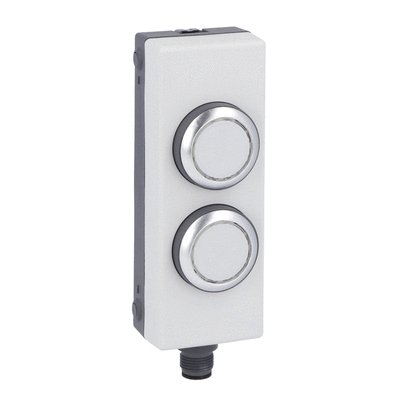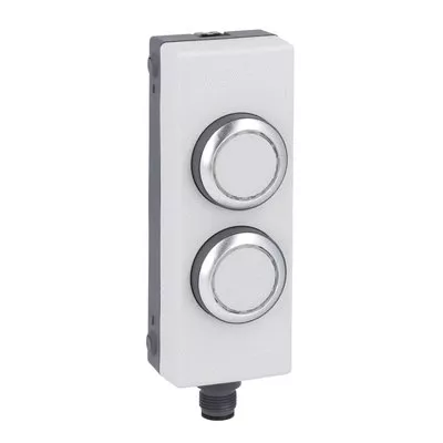 LP4P2B8901 Kaseta sterownicza do montażu na płycie lub prowadnicy 40mm, z 2 białymi płaskimi przyciskami z samoczynnym powrotem i podświetleniem, 5…35VAC/DC, każdy ze stykiem 1NO