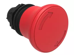 LPCB6344 Plastikowy przycisk Ø22mm serii Platinum, grzybkowy, blokowany, odblokowanie przez obrót, Ø40mm. Do normalnego zatrzymania. Czerwony