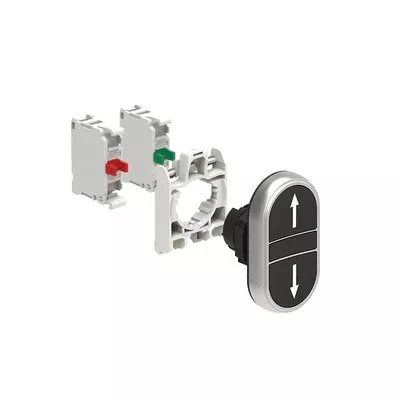 LPCB7191K20 ZESTAW: Przycisk podwójny, samoczynny powrót, 2 kryte, czarny-czarny/↑ ↓. Adapter montażowy. Zestyki 2NO, zaciski śrubowe.