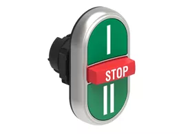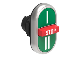 LPCB7345 Plastikowy przycisk Ø22mm serii Platinum, potrójny, samoczynny powrót, 2 zewnętrzne kryte i 1 środkowy wystający, I - STOP - II