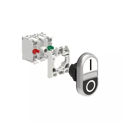 LPCBL7124K11PB ZESTAW: Przycisk podwójny, samoczynny powrót, biały wskaźnik, 2 kryte, biały-czarny,/I 0. Adapter montażowy. Zestyki 1NO+1NC, zaciski śrubowe. Lampka LED, światło ciągłe, zasilanie 12...30VAC/DC.