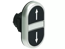 LPCBL7191 Plastikowy przycisk Ø22mm serii Platinum, dwuklawiszowy, samoczynny powrót, 2 kryte i biały podświetlany dyfuzor. Czarny -Czarny / ↑ - ↓