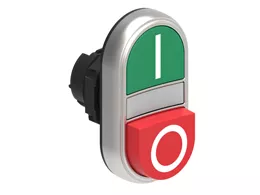 LPCBL7223 Plastikowy przycisk Ø22mm serii Platinum, dwuklawiszowy, samoczynny powrót, 1 kryty, 1 wystający i biały podświetlany dyfuzor. Zielony -Czerwony / I - 0