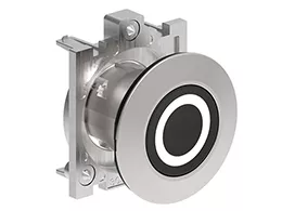 LPFB1102 Metalowy przycisk płaski Ø30mm serii Platinum, kryty, samoczynny powrót, z symbolem, 0 / Czarny