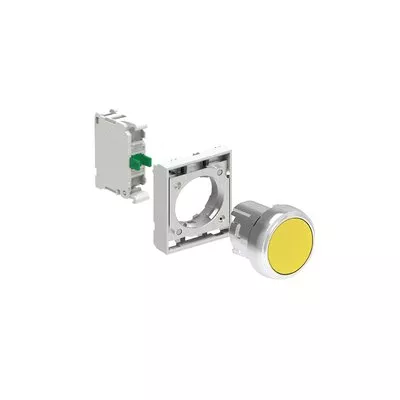 LPSB105K10 ZESTAW: Przycisk metalowy, samoczynny powrót, kryty, żółty. Adapter montażowy. Zestyki 1NO, zaciski śrubowe.
