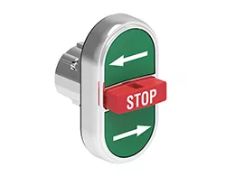 LPSB7365 Metalowy przycisk Ø22mm serii Platinum, potrójny, samoczynny powrót, 2 zewnętrzne kryte i 1 środkowy wystający, → - STOP - ←