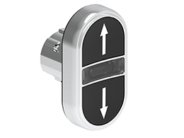 LPSBL7191 Metalowy przycisk Ø22mm serii Platinum, dwuklawiszowy, samoczynny powrót, 2 kryte i biały podświetlany dyfuzor. Czarny - Czarny / ↑ - ↓