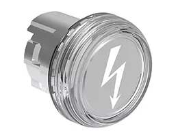 LPSL1187 Metalowa głowica lampki Ø22mm serii Platinum, przezroczysta, z symbolem wskazującym niebezpieczne napięcie, bez adaptera montażowego
