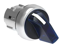 LPSSL1306 Metalowy przełącznik podświetlany Ø22mm serii Platinum, pokrętło krótkie, 3 pozycje, 1 - 0 - 2. Niebieski