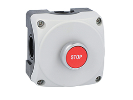 LPZP1B8103 Szara obudowa LPZP1A8 z czerwonym przyciskiem krytym LPCB1134 "STOP", 1NC