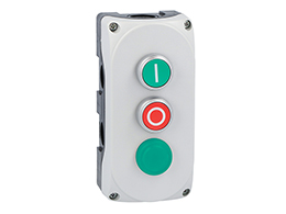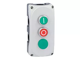 LPZP3B8910 Szara obudowa LPZP3A8 z zielonym przyciskiem krytym LPCB1113 "I" i zestykiem 1NO, czerwonym przyciskiem krytym LPCB1104 "O" i zestykiem 1NC i zieloną lampką 24V