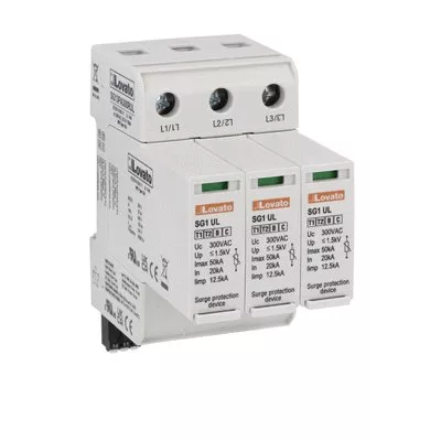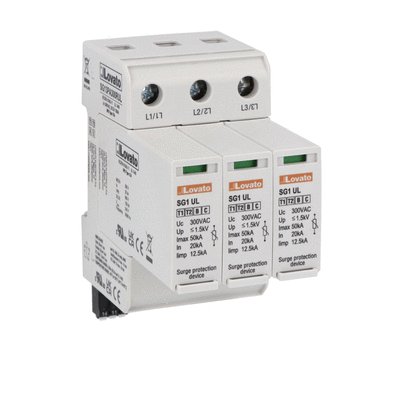 SG13PA300RUL Ogranicznik przepięć, typ 1 i 2, wymienne wkłady, zestyk 1C/O, In 20kA, Uc 300VAC, certyfikat UL