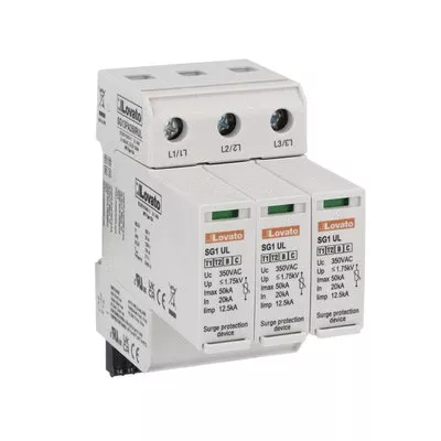 SG13PA350RUL Ogranicznik przepięć, typ 1 i 2, wymienne wkłady, zestyk 1C/O, In 20kA, Uc 350VAC, certyfikat UL