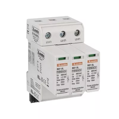 SG13PA480RUL Ogranicznik przepięć, typ 1 i 2, wymienne wkłady, zestyk 1C/O, In 20kA, Uc 480VAC, certyfikat UL