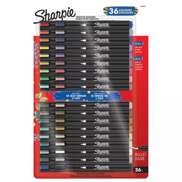 Zestaw Sharpie Kreatywne markery AKRYLOWE KOLORY PODSTAWOWE & KOLORY ZIEMI & CIEPŁE KOLORY (końcówka stożkowa) 36 szt. 2,5 mm