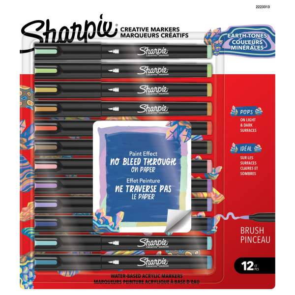 Zestaw Sharpie Kreatywne markery AKRYLOWE KOLORY ZIEMI (końcówka pędzelek) 12 szt. minimum 1,2 mm