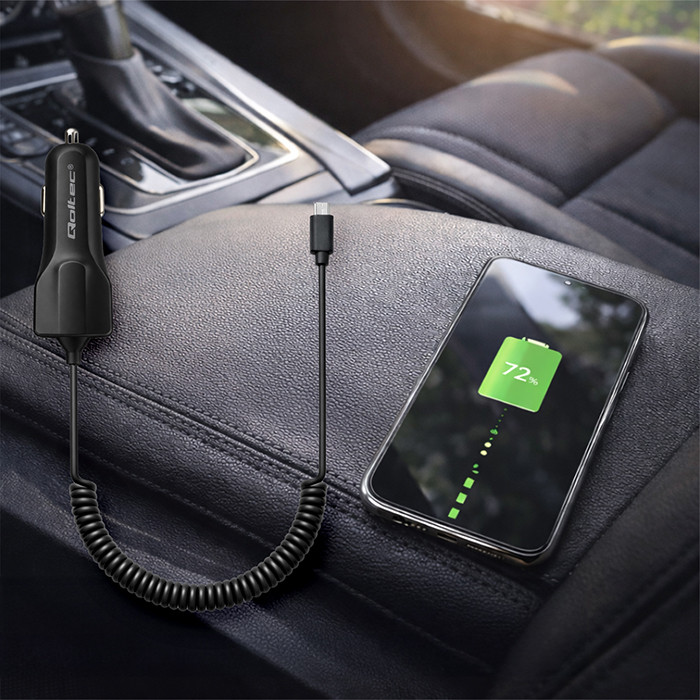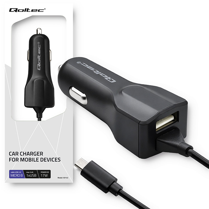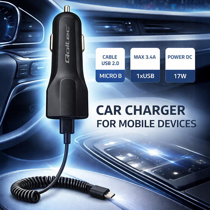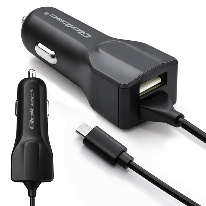 Qoltec Ładowarka samochodowa 12-24V | 17W | 5V | 3.4A | USB + kabel Micro USB