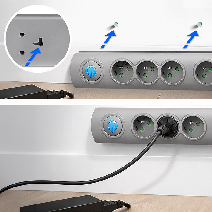 Możliwość montażu na dowolnej powierzchni Kolejnym udogodnieniem, w jakie została wyposażona nasza listwa jest możliwość umieszczenie listwy w konfiguracji pionowej (np. na ścianie) lub poziomej (np. pod biurkiem) dzięki uchwytom umieszczonym na jej końcach. Dzięki wymienionym cechom zorganizujesz swoją przestrzeń tak, aby zbyt duża ilość kabli nie zaburzyła Twojego poczucia estetyki. Producent zastrzega sobie prawo do zmiany parametrów technicznych urządzenia.