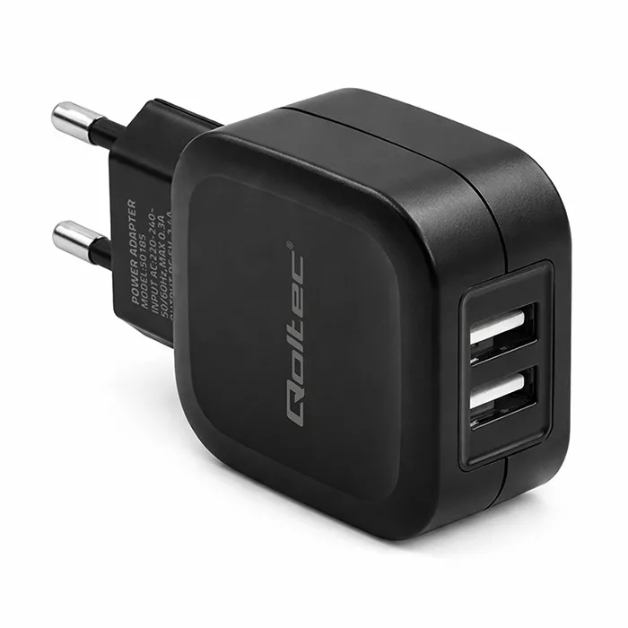 Ładowarka sieciowa marki Qoltec została wyprodukowana z materiałów najwyższej jakości, aby zapewnić Ci niezawodne zasilanie w każdej sytuacji. Wyposażona w 2 porty USB o łącznej mocy 2.4A.