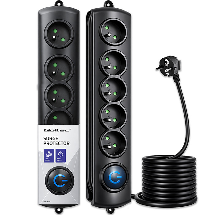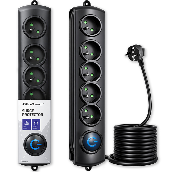 Qoltec Listwa zasilająca antyprzepięciowa | 5 gniazd | 1.8m | Czarna
