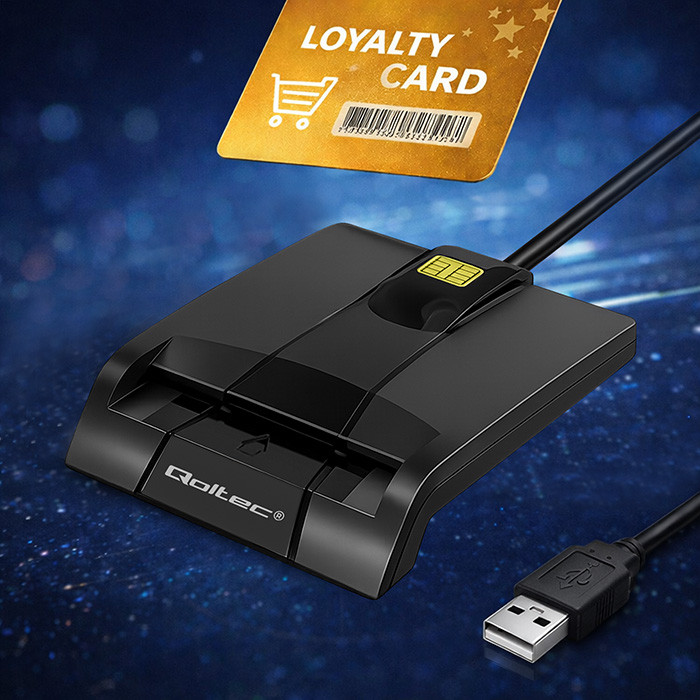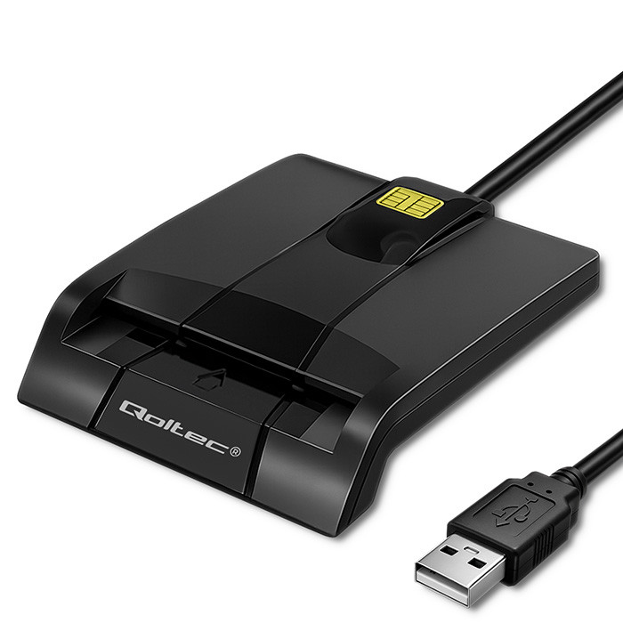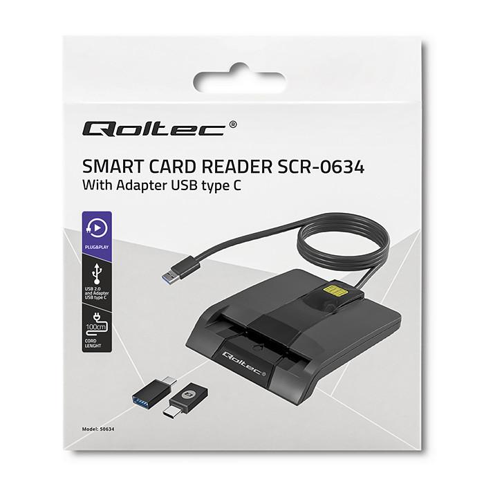 Qoltec Inteligentny czytnik chipowych kart ID SCR-0634 | USB 2.0 + Adapter USB-C