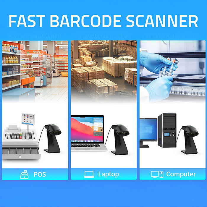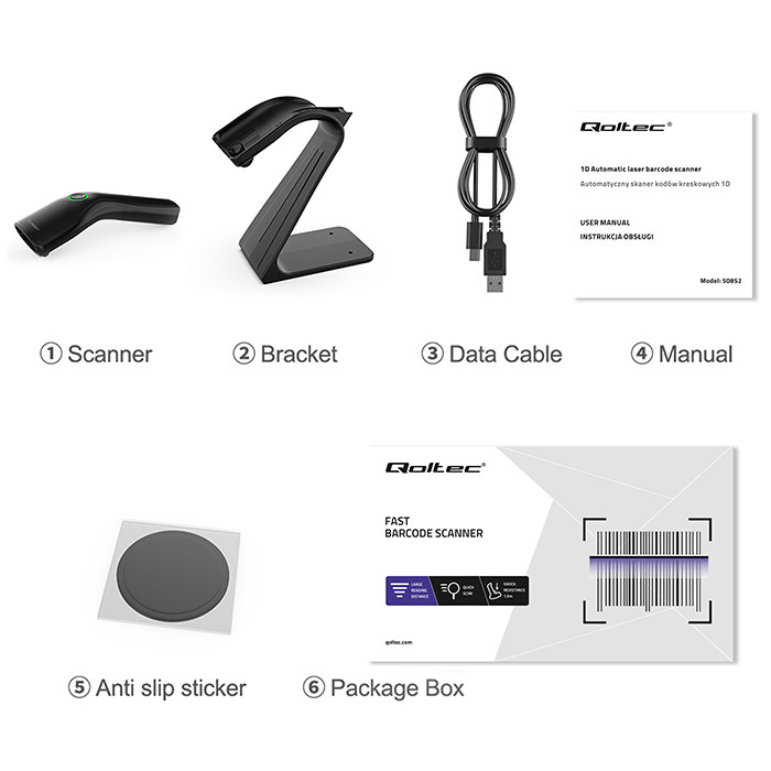 Qoltec Skaner czytnik kodów kreskowych + stojak na skaner | 1D | USB