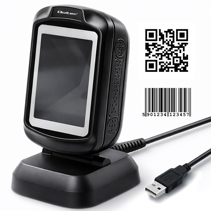 Qoltec Stacjonarny skaner czytnik kodów kreskowych 1D 2D | QR |EAN | USB | Szybki