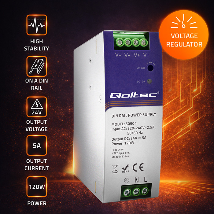 Zasilacze na szynę DIN marki Qoltec są przydatnym elementem systemów automatyki, sterowania maszynami, technice oświetleniowej oraz elektronice przemysłowej w których istotny jest rozmiar urządzeń zasilających oraz dostosowanie ich do ograniczonej przestrzeni.