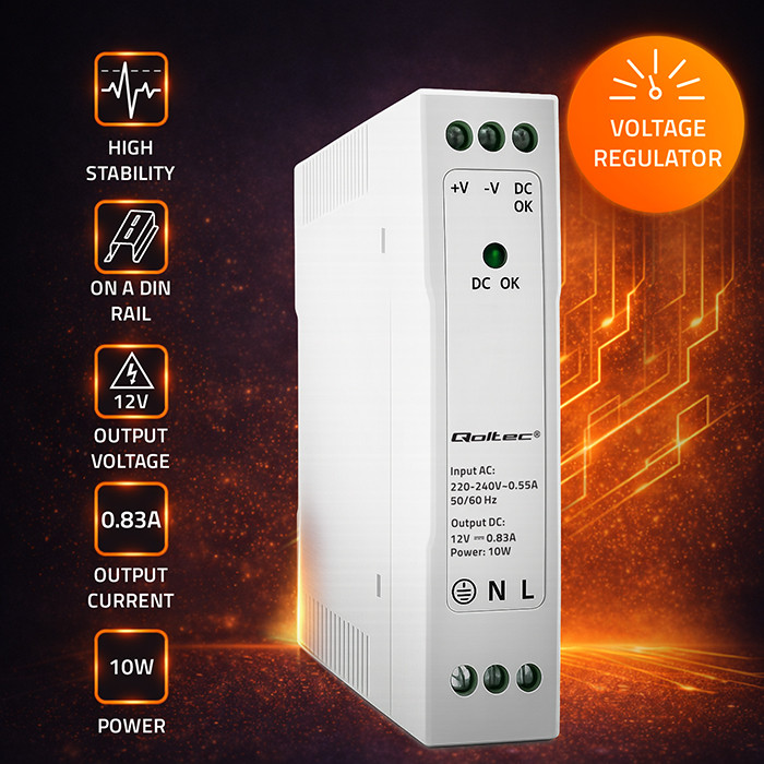 Qoltec Zasilacz na szynę DIN | 10W | 12V | 0.83A | Biały | Slim