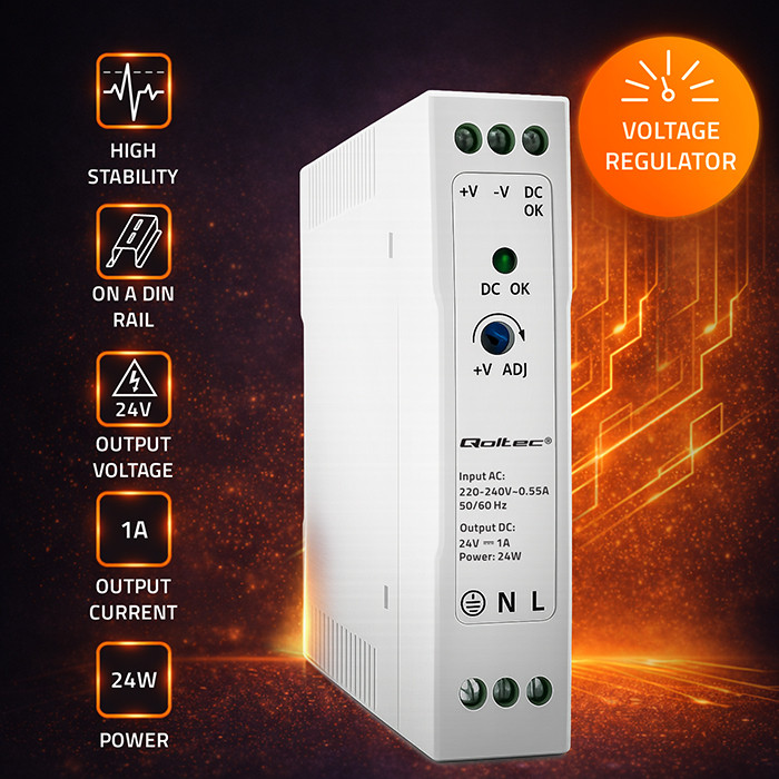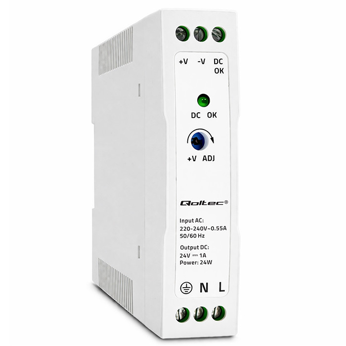 Qoltec Zasilacz na szynę DIN | 24W | 24V | 1A | Biały | Slim