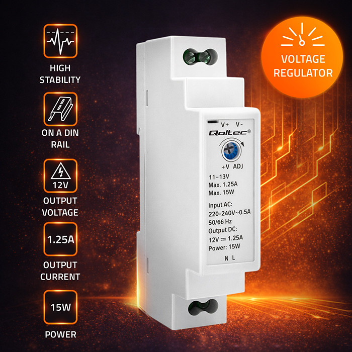 Qoltec Zasilacz na szynę DIN | 15W | 12V | 1.25A | Szary