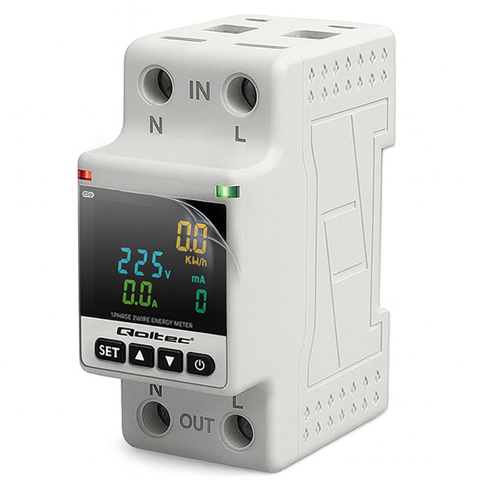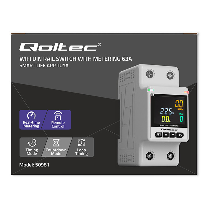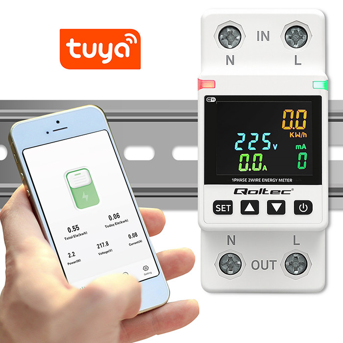 Qoltec Jednofazowy elektroniczny licznik watomierz | miernik zużycia energii | DIN35 | Zdalne sterowanie | Historia pomiaru | Wi-fi | TUYA | Smart life