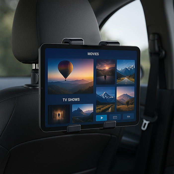 • Solidne mocowanie: wytrzymała konstrukcja z łatwym montażem na zagłówku samochodowym zapewnia stabilność, zapobiegając wstrząsom i przesuwaniu urządzenia podczas jazdy