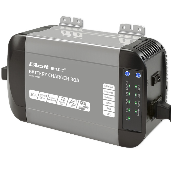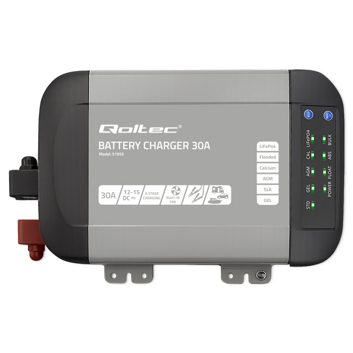 Qoltec Inteligentna profesjonalna ładowarka Monolith do akumulatorów LiFePO4 AGM GEL SLA | 30A | 12V