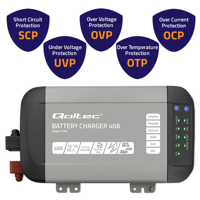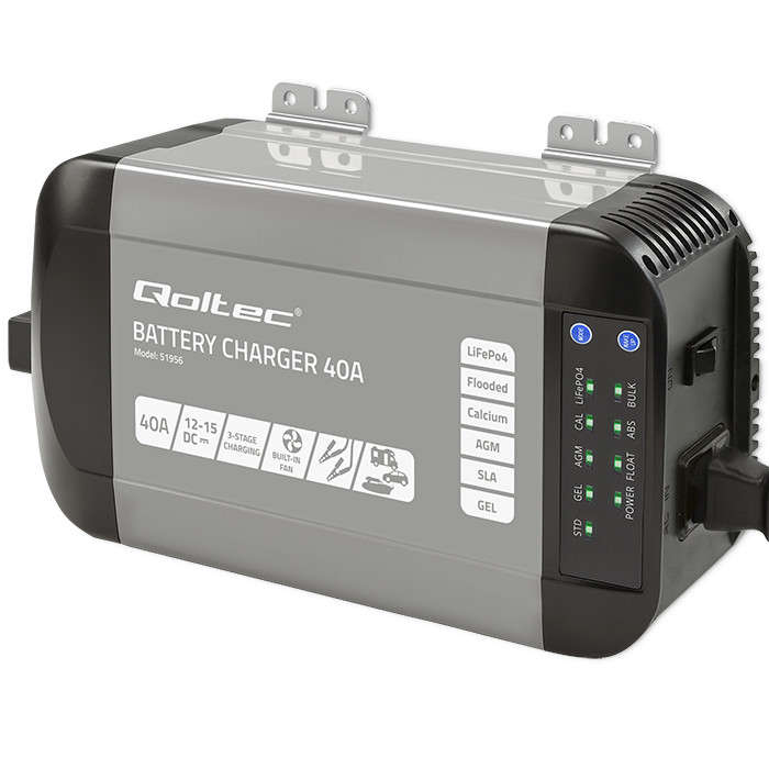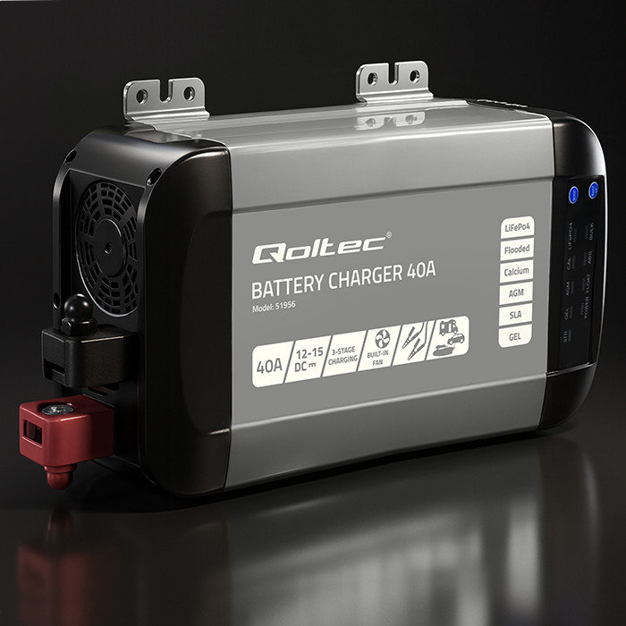 Qoltec Inteligentna profesjonalna ładowarka Monolith do akumulatorów LiFePO4 AGM GEL SLA | 40A | 12V
