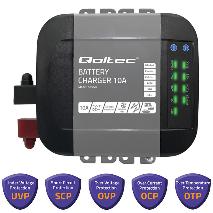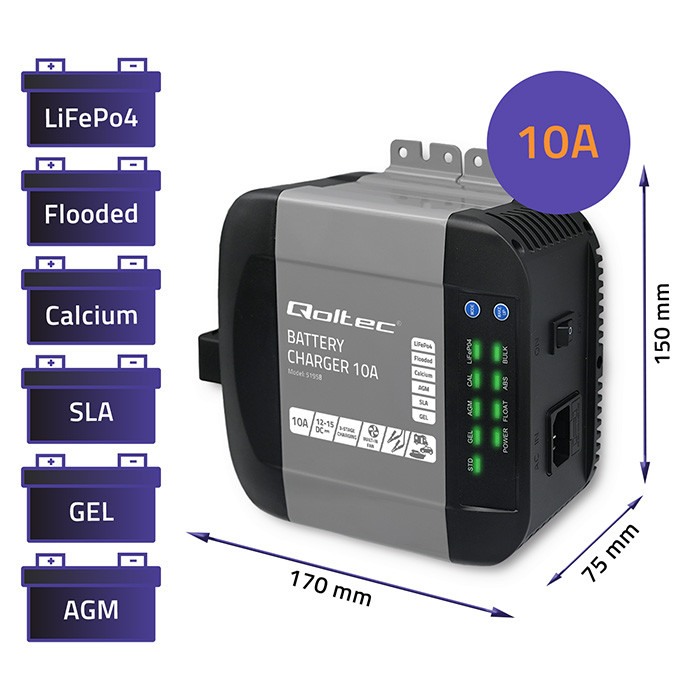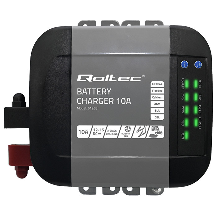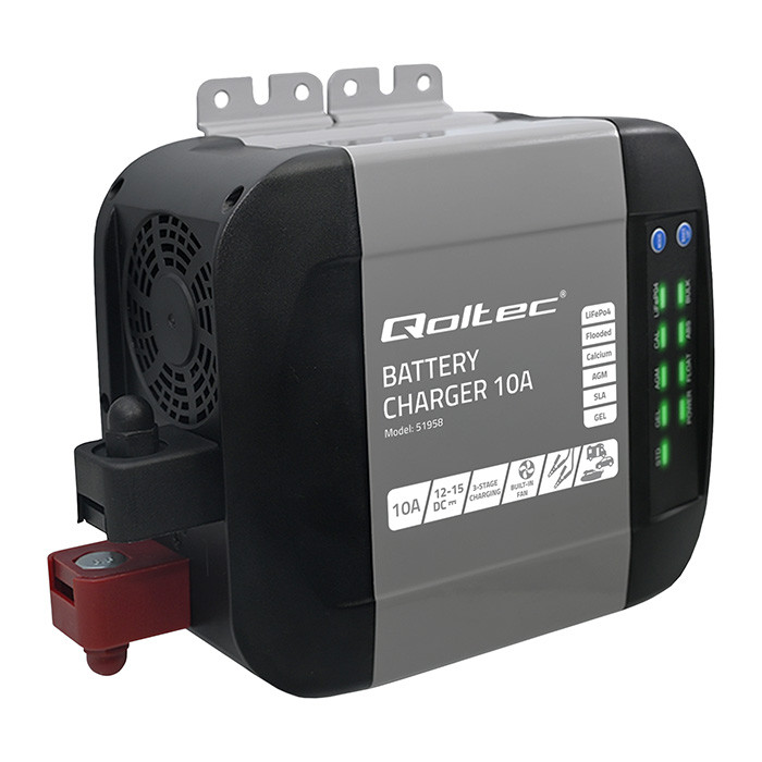 Qoltec Inteligentna ładowarka Monolith do akumulatorów LiFePO4 AGM GEL SLA | 10A | 12V