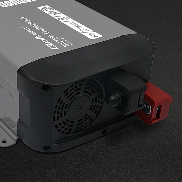 - Wbudowane aktywne chłodzenie - automatycznie włącza się w chwili ładowania i chroni ładowarkę zwłaszcza przy ładowaniu mocno rozładowanych akumulatorów,