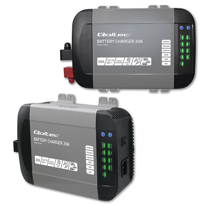 Qoltec Inteligentna ładowarka Monolith do akumulatorów LiFePO4 AGM GEL SLA | 20A | 12V