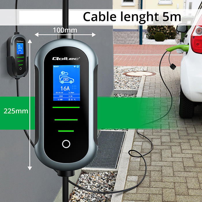 Qoltec Mobilna ładowarka do samochodu elektrycznego EV z regulacją 2w1 Typ2 | 11kW | 400V | Wi-fi | TUYA | SMART LIFE | LCD | Przenośna | Wallbox | 5m