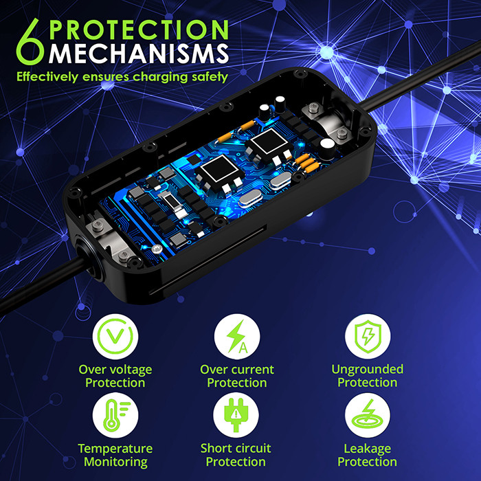 Zaawansowane funkcje zabezpieczające, które chronią zarówno samochód, jak i użytkownika Projektując ładowarki postawiliśmy przede wszystkim na bezpieczeństwo. Już teraz możesz bezpiecznie i szybko naładować swój samochód. Produkt posiada zaawansowane funkcje zabezpieczające oraz posiada diody led, które w zależności od obecnego statusu zmieniają kolor.