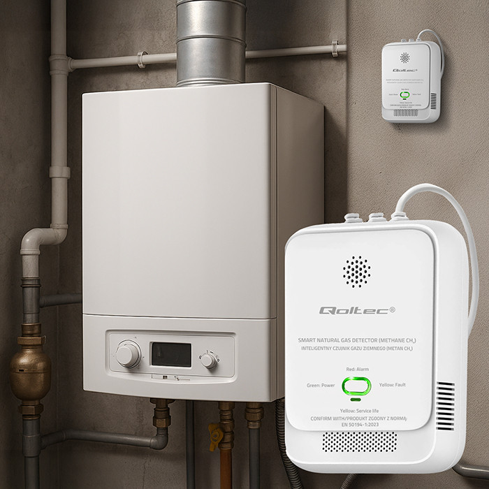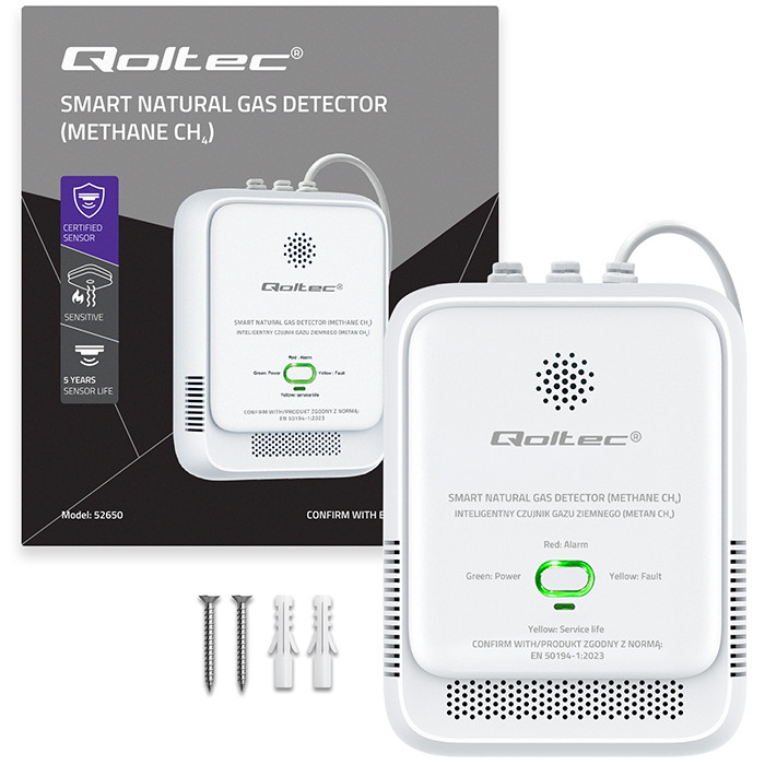 Qoltec Certyfikowany Czujnik wycieku gazu ziemnego | detektor CH4 | NG | alarm 85dB | LED